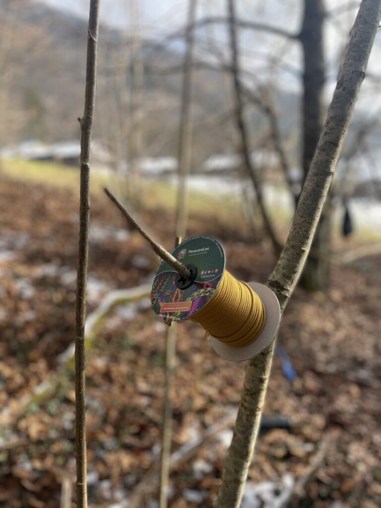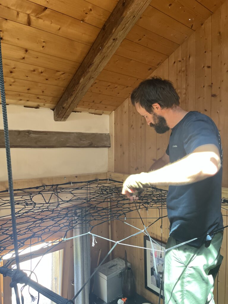 3. After the static rope had been doubled up (something we always do for extra strength and resilience), we were able to start with the paracord – over 2km of it!